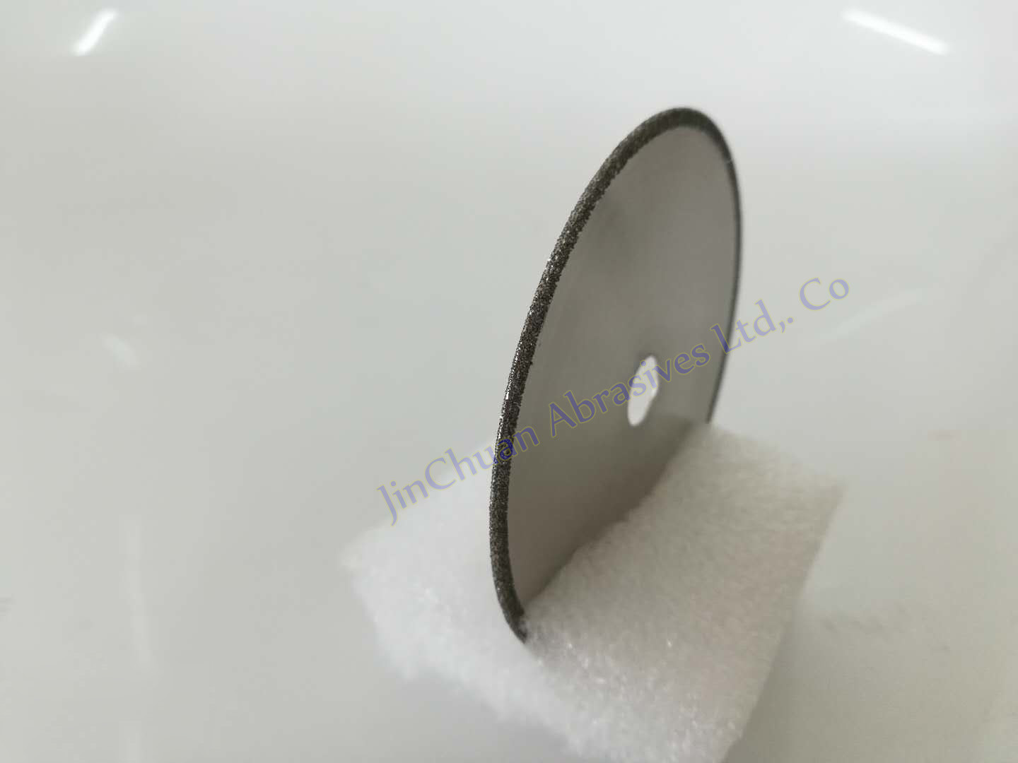 डायमंड प्लेटेड अल्ट्रैथिन स्लाइस ब्लेड में उत्कृष्ट सफाई प्रदर्शन होता है और काटने की प्रक्रिया के दौरान कम से कम गर्मी उत्पन्न करता है। धातु के बंधे हुए हीरे के कटिंग ब्लेड के विपरीत, इलेक्ट्रोलेटेड डायमंड कटिंग आरा ब्लेड अपने बहुत ही उच्च हीरे के घनत्व के कारण सूखे और तेज काटने में उपयोग के लिए अधिक उपयुक्त होते हैं, जो कि निकल मिश्र धातु द्वारा हीरे की शीट की सतह पर कठोरता से बंधे होते हैं। हीरे के कण बांधने की मशीन से फैलते हैं। निकेल-बॉन्ड डायमंड-प्लेटेड आरा ब्लेड मुख्य रूप से कटिंग ऑपरेशन शुरू करने के लिए उपयुक्त हैं।
