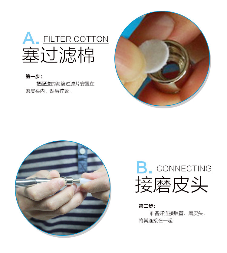 2. कनेक्टिंग नली, पीसने वाला सिर तैयार करें, और इसे एक साथ कनेक्ट करें
