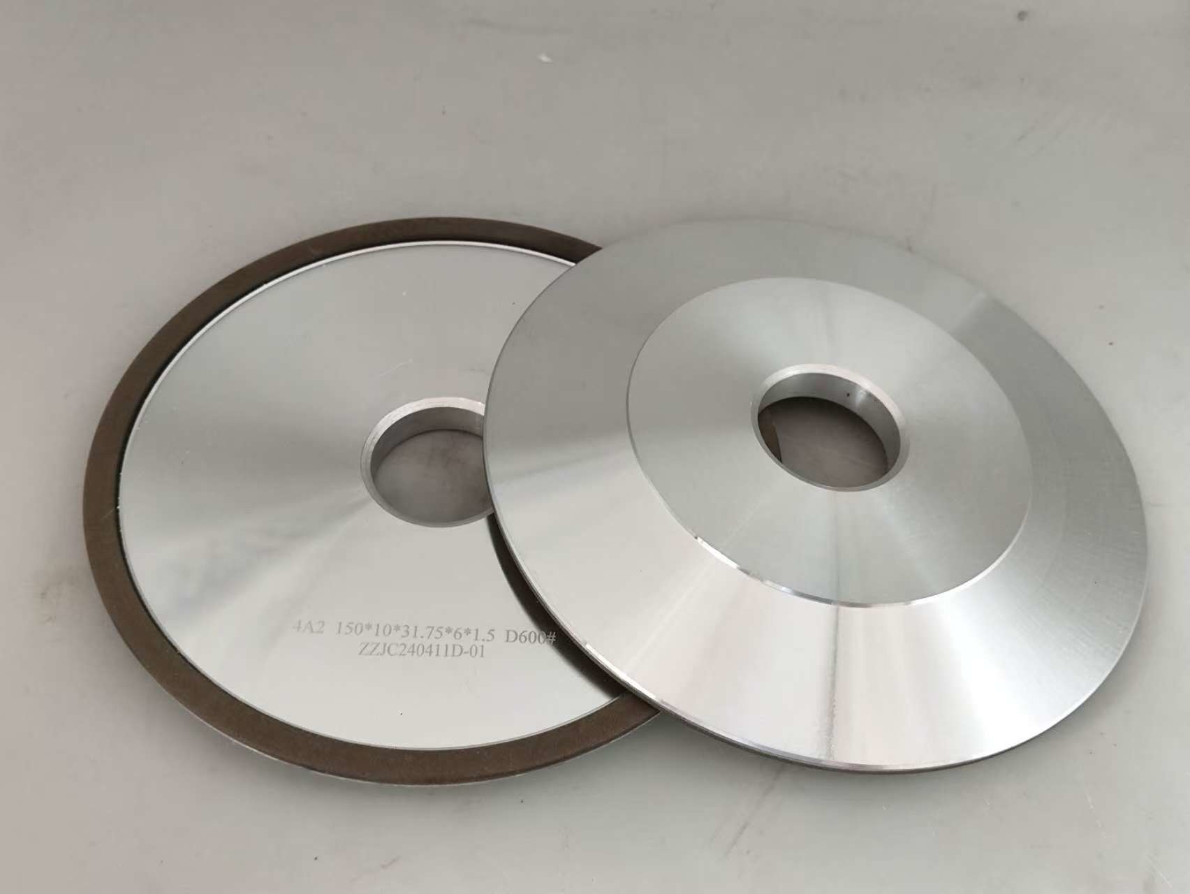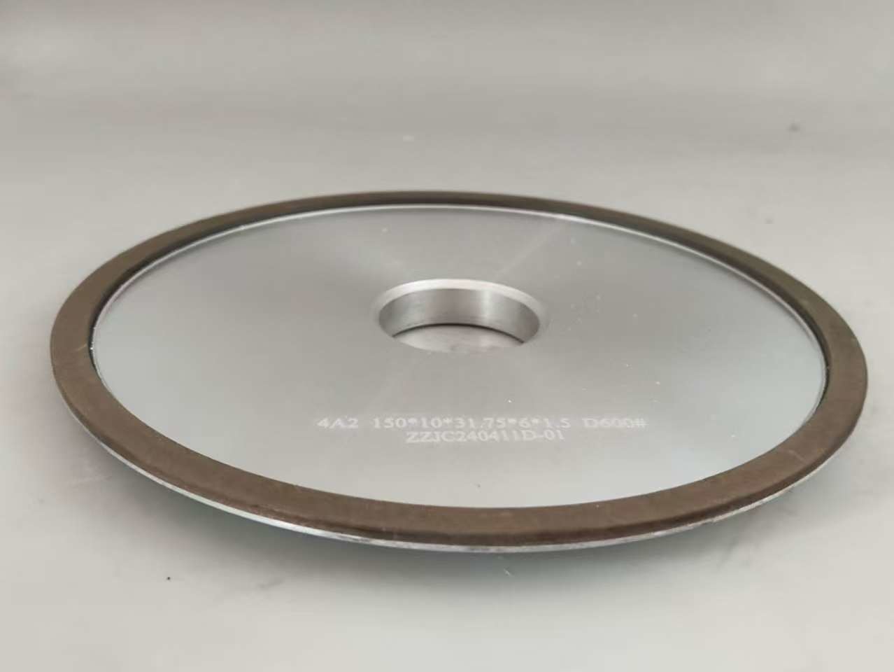 4A2 राल बंधन हीरा पीसने वाला पहिया एल्यूमीनियम निकाय के साथ व्यास 150 मिमी के कार्बाइड परिपत्र आरा ब्लेड के लिए प्रयोग किया जाता है।