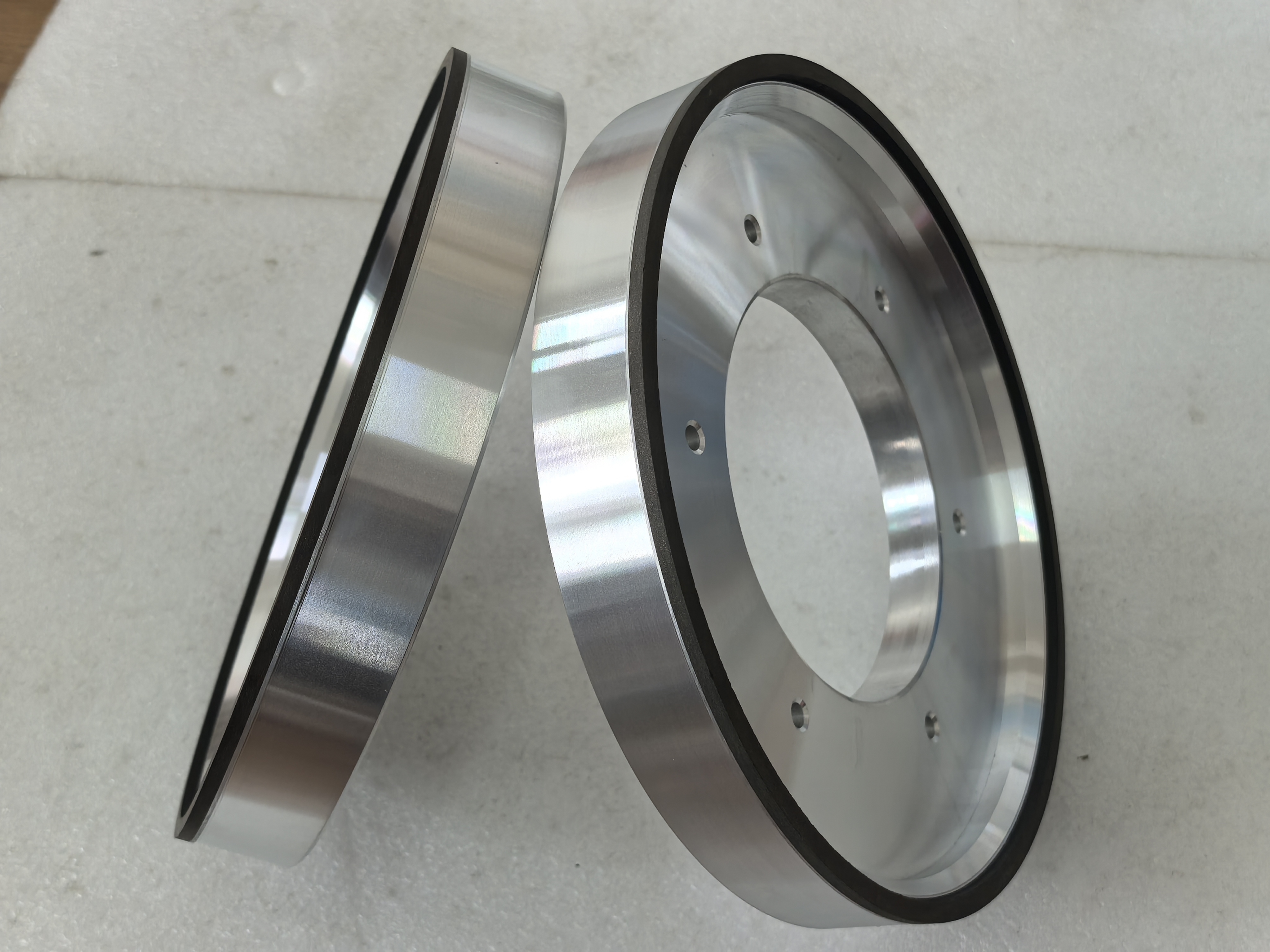 Resin bond diamond grinding wheel is a high-efficiency precision grinding tool that combines the superhard properties of diamond and the elasticity of resin and is widely used in the field of high-precision machining. आम तौर पर एक मैट्रिक्स, एक बांधनेवाला पदार्थ और एक घर्षण परत शामिल है। सब्सट्रेट आम तौर पर संरचनात्मक ताकत सुनिश्चित करने और स्थापना की सुविधा के लिए एल्यूमीनियम मिश्र धातु या स्टील से बना होता है;बंधक आमतौर पर फेनोलिक राल होता है, इपॉक्सी राल या पॉलीमाइड, जो लचीलापन प्रदान करता है और हीरे को थर्मल क्षति से बचाने के लिए एक कम सख्त तापमान है;घर्षण परत हीरे के कणों और राल बांधने वाले के मिश्रण से बनी होती है, और हीरे के कणों के आकार को मांग के अनुसार समायोजित किया जा सकता है (गंभीर पीसने से सुपर ठीक पीसने तक) ।